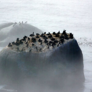 Robben Island is where Nelson Mandela was imprisoned for 18 of the 27 years he was in custody. As we approached on the very same boat that had taken him to the island I noticed the stark contrast between the brash white concrete of the new breakwater ( solid, monolithic rock, sharp edged, immovable) – and the black sea birds flying free above and around and then nestling on the concrete. It seemed to be a poignant visual metaphor of the successful struggle for black freedom against the forces of white apartheid.